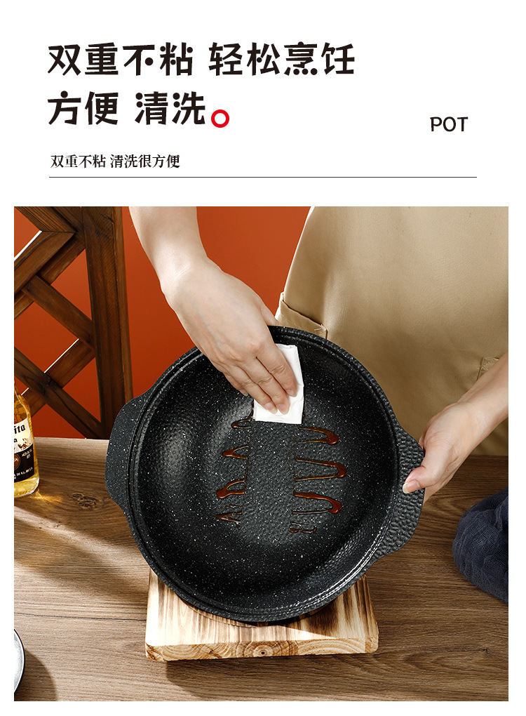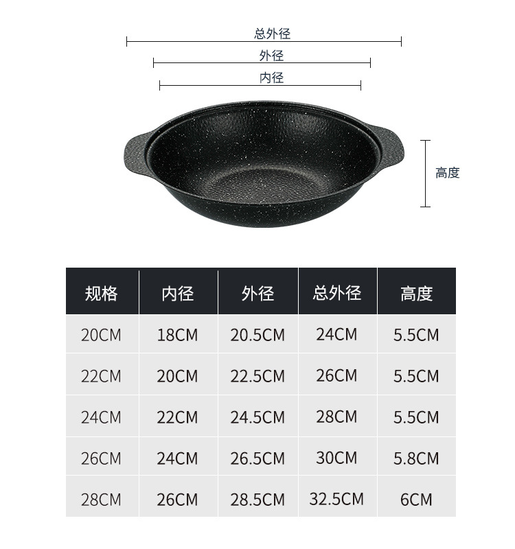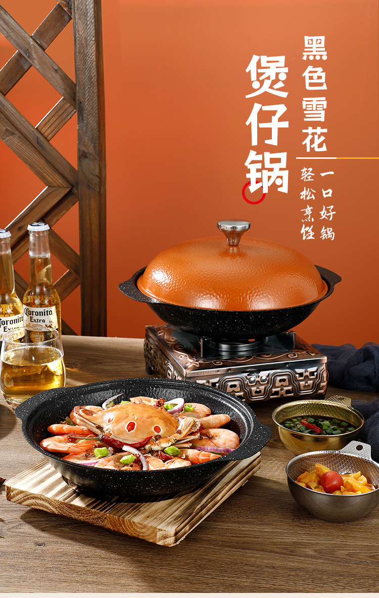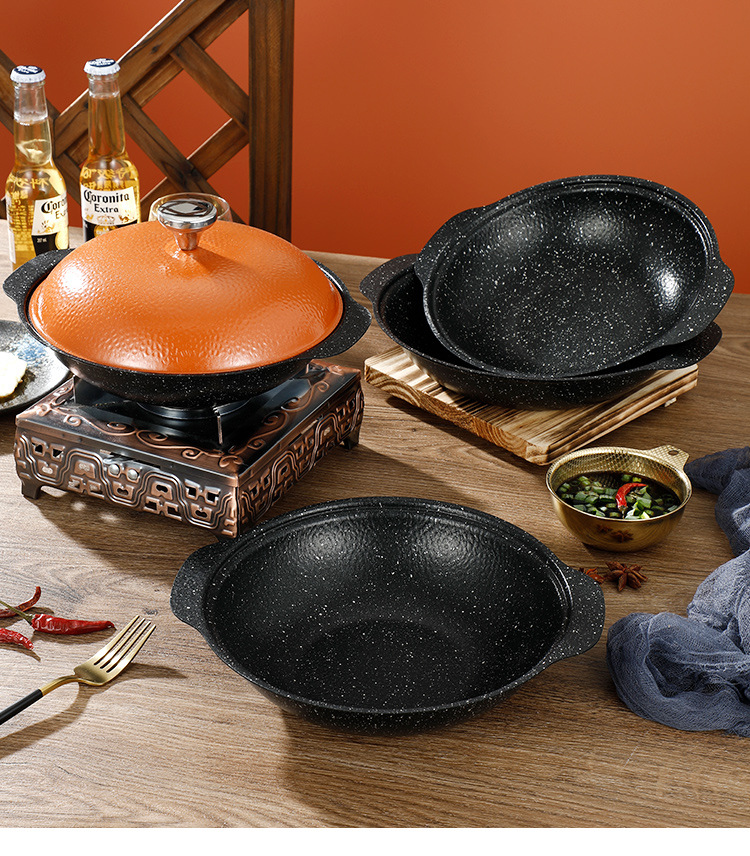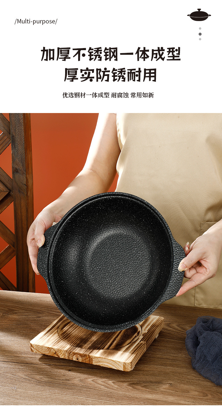 Medical Stone Black Snowflake Pot Hammer Pattern Non-Coated Non-Stick Pot With Cover Thickened Stainless Steel Thermal Conductivity Layer