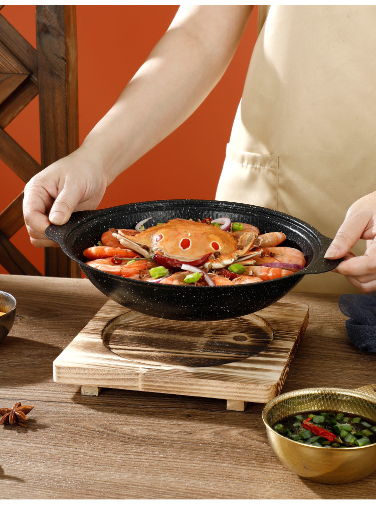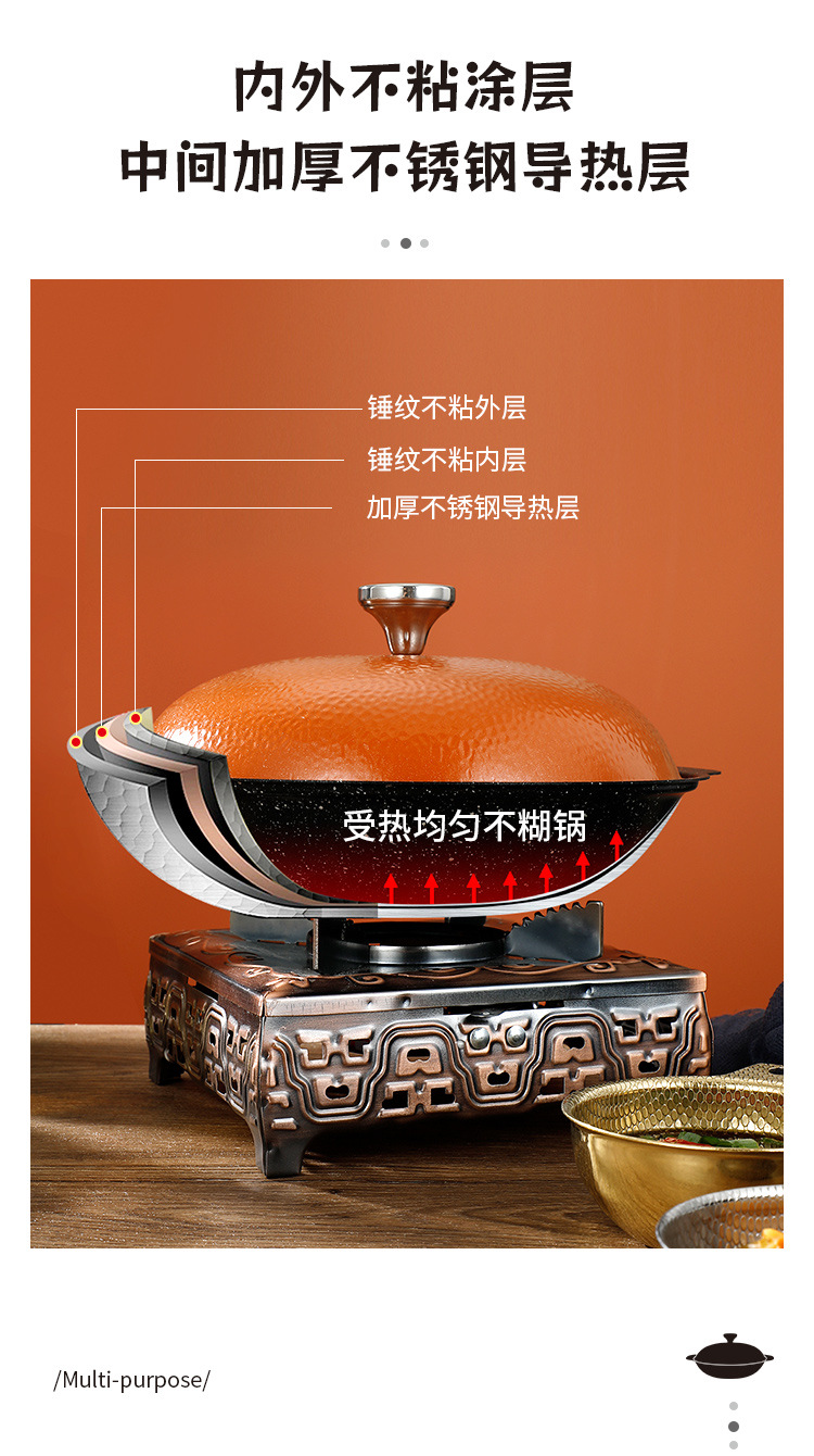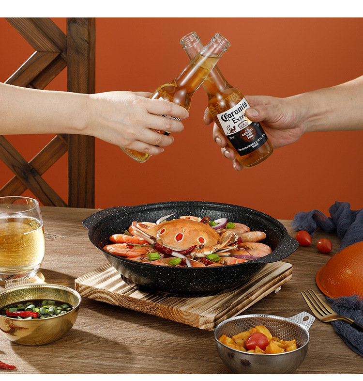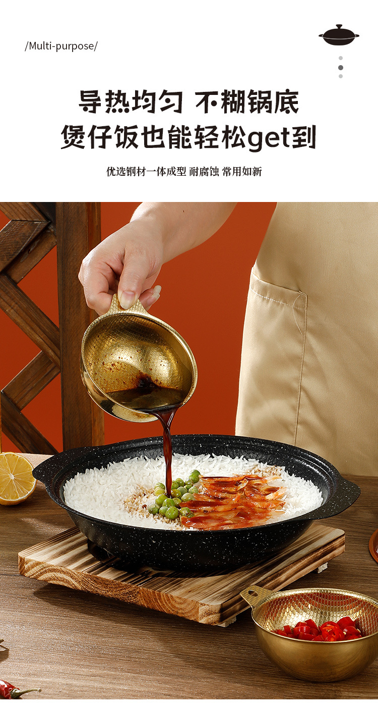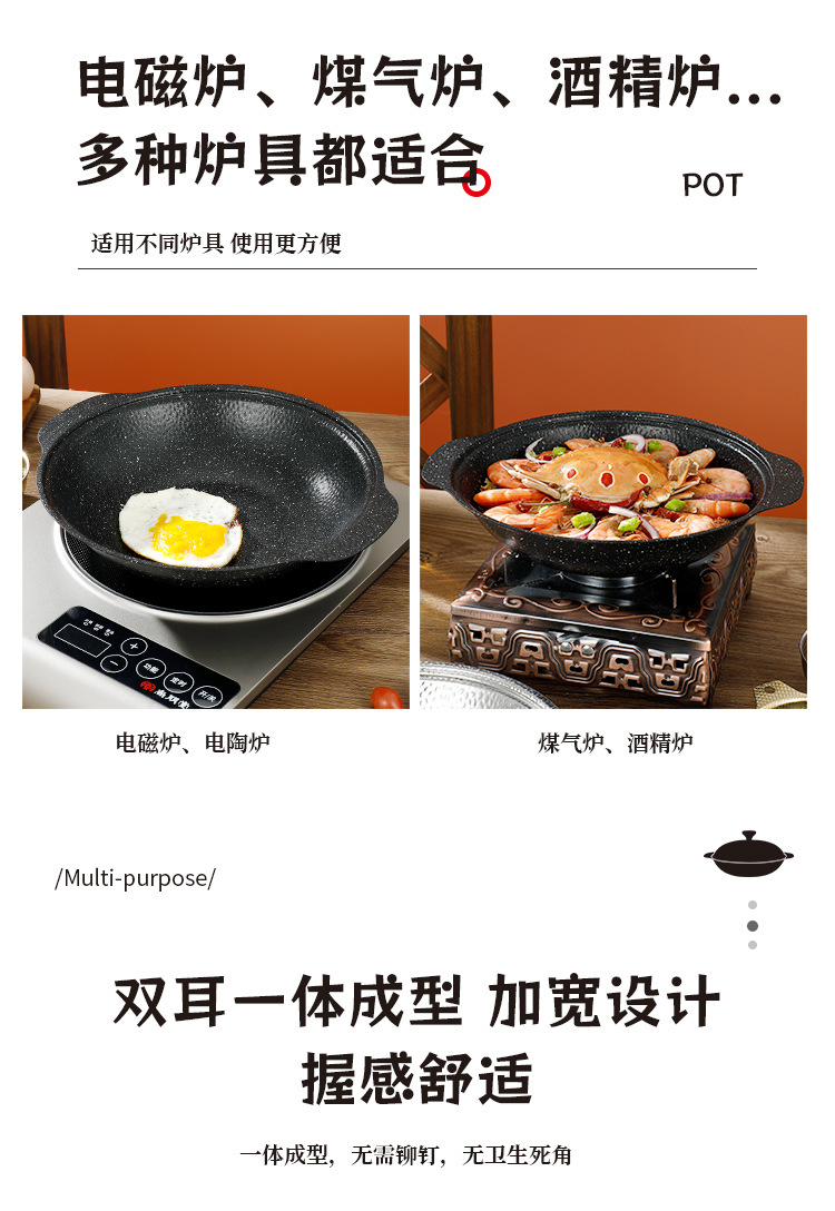 Medical Stone Black Snowflake Pot Hammer Pattern Non-Coated Non-Stick Pot With Cover Thickened Stainless Steel Thermal Conductivity Layer