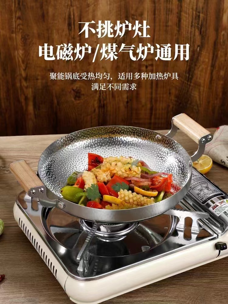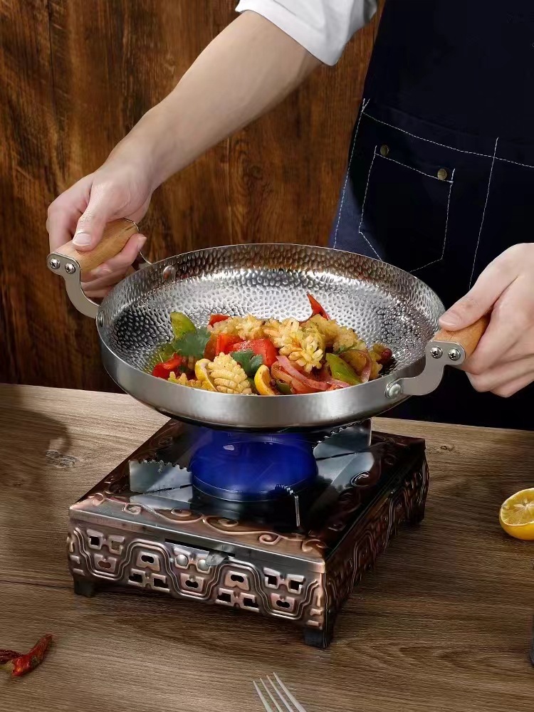 Stainless Steel Dry Pot Snow Wood Handle Ear Birthday Star Pot Thickened Bar Tripod Hammer Pattern Non-Stick Deep Dish Two Ear Lobster Plate